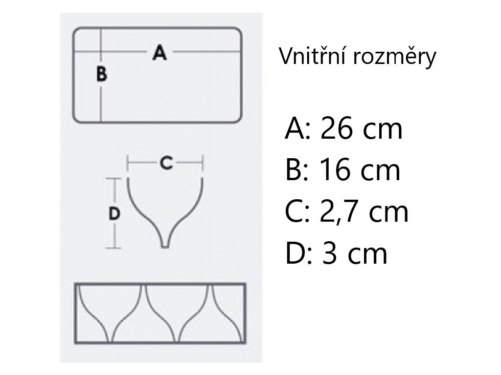 | Vnitřní rozměry (š x v x h): | 2,7 x 3 x 16cm |