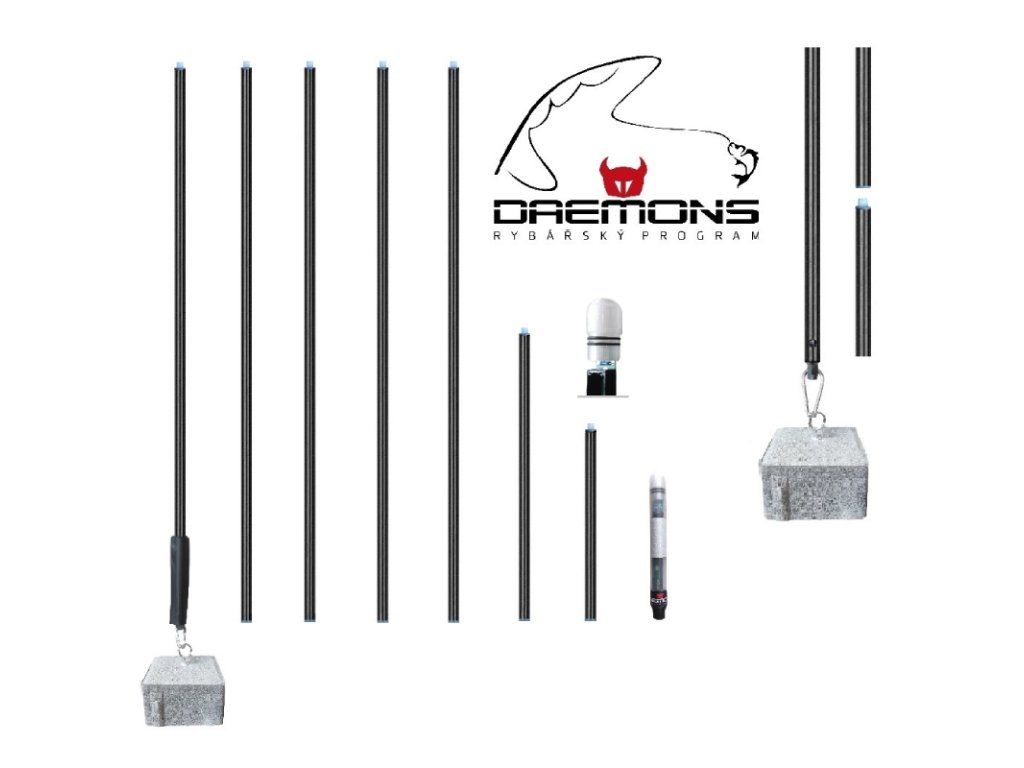 Stavitelná sklopná tyčová bójka DAEMONS 05-R pro označení lovného místa se zcela novou špičkovou svítící LED elektronikou, novými nerezavějícími spoji jednotlivých dílů a ukotvením.