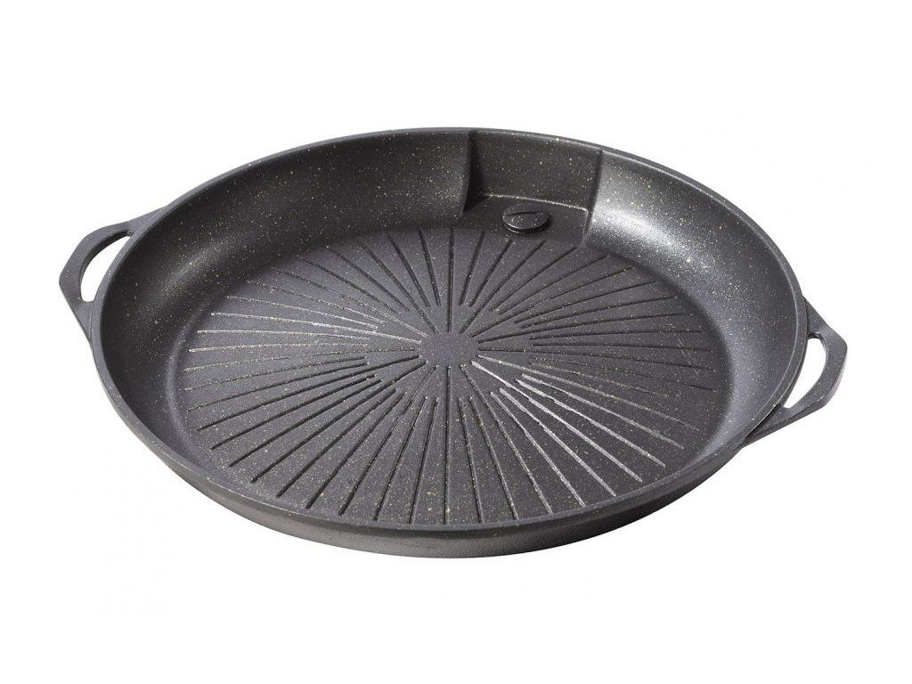 Hliníková grilovací deska s nepřilnavým povrchem, otvor pro odtok tuku.
