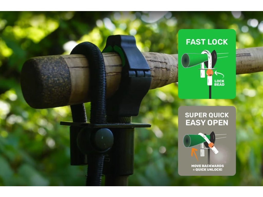 - Quick Release System - Otevření pojistky v případě záběru je naprosto jednoduché - stačí jeden rychlý pohyb prutem dozadu.